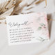 Vervollständigen Sie Ihre Hochzeitssaison mit dieser stilvollen Wunschkarte. Die Einrichtung besteht aus rosafarbenen Blume und Grün auf einem hellrosa Hintergrund.