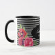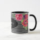 Blume Rot und Rosa, schwarze graue Streifen Tasse