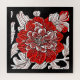 Puzzle in einer großen, roten Kamelie-Blume, im inspirierten Jugendstil mit Blumenhintergrund in Schwarz und Weiß