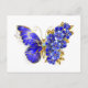 Schmuck, blau, Saphir, funkelnder Schmetterling aus Blume mit blauen, wertvollen Blume mit goldenen Blätter auf weißem Hintergrund.