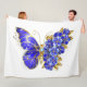 Schmuck, blau, Saphir, funkelnder Schmetterling aus Blume mit blauen, wertvollen Blume mit goldenen Blätter auf weißem Hintergrund.