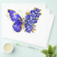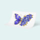 Schmuck, blau, Saphir, funkelnder Schmetterling aus Blume mit blauen, wertvollen Blume mit goldenen Blätter auf weißem Hintergrund.