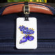 Schmuck, blau, Saphir, funkelnder Schmetterling aus Blume mit blauen, wertvollen Blume mit goldenen Blätter auf weißem Hintergrund.