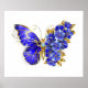 Schmuck, blau, Saphir, funkelnder Schmetterling aus Blume mit blauen, wertvollen Blume mit goldenen Blätter auf weißem Hintergrund.