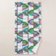 Dieses Set ist mit einem gelben Waschlappen, einem orangefarbenen Handtuch und einem Badetuch mit einem Boho-Design von Blume in Ovalen ausgestattet, die in vier Teile geteilt und in ein Gitter gelegt wurden.