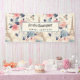 Business Banner mit einem schönen französischen Motivmuster. Hübsche Blume, Eiffelturm und Schmetterlinge. Die Farben sind pink, blau, pfirsichfarben und creme.