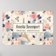 Business Poster mit einem schönen französischen Motivmuster. Hübsche Blume, Eiffelturm und Schmetterlinge. Die Farben sind pink, blau, pfirsichfarben und creme.