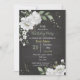 Träumromantische weiße Blume und grüne Blätter botanische Schwarze Geburtstagsfeier Einladung Der Glitzer Details werden simuliert