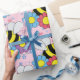 2 niedliche Hummeln mit Blume. Um diese beiden großen Hummeln herum sind Blume in Rosa, lila, Blau und Gelb. Vollständig anpassbar und sogar personalisierbar. Dieses farbenfrohe Bienendesign ist ideal für Sommer- und Bienenliebhaber.