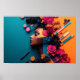 Wunderschönes Plakat mit dunkelhäutigen Frauen, umgeben von Blume und Kosmetika, die Schönheit und Eleganz feiern. Das lebendige Design vereint Gnade und Kraft und ist somit eine perfekte Ergänzung zu allen Zuhause-, Büro- oder Schönheitsliebhabern. Ideal für diejenigen, die unterschiedliche Repräsentationen der Schönheit schätzen. Erhältlich in verschiedenen Größen und individuell anpassbaren Optionen.