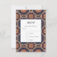 Eine RSVP-Karte mit einem sich wiederholenden Muster dekorativer Elemente in Blume, Stern und Sonnenformen.