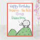 Herzlichen Glückwunsch zum Geburtstag eines Floristen. Der sonnige Cartoon eines Schafes auf einem Hügel. Das Schaf sagt "Best Baa None". Fügen Sie eine Nachricht vom Absender hinzu.
