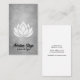 Eine Blume aus weißem Lotus schwingt auf grauem Hintergrund mit dezenten weißen Konfetti.