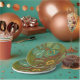 Blume von Aqua und Burnt Orange im grünen Hintergr Pappteller