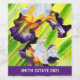 Schönes Originalgemälde von bunten lila, gelben und grünen Iris Blume. Wasserfarbene Kunst.