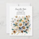 Hübsche 3D-Papier-Quilling-Effekt-Blume und Schmetterling Hochzeit Speichern Sie die Date-Karten. Diese schöne Hochzeit Save the Dates Karten sind elegant mit einer Touch von whimsy. Bearbeiten Sie Ihre Namen und Hochzeitsinformationen im personalisierbaren Bereich. Die Farbtöne sind überwiegend weiß und goldfarben, die Touch ist blassblau.
