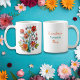 Oma's Lieblings-Tasse. Sie können den Text personalisieren, um ihn zu einem beliebigen Familienmitglied oder Namen zu machen. Hübsche Blume aus Papier in Rot, Rosa und Gelb.