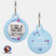 Liebevoll gestaltete hellblaue Haustiermarke - verziert mit einer Umrandung aus kleinen Blumen in in blau und lila - personalisierbar mit dem Foto deines geliebten Haustieres auf der Vorderseite und auf der Rückseite kannst du wichtige Daten hinterlegen, wie den Namen deines Hundes oder deiner Katze, Telefonnummer und Ort, auch eine besondere Geschenkidee für Haustierbesitzer