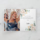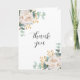 Weißer Hintergrund. Weiße Blumen und Eukalyptusgrün. Vielen Dank ist mit einer großen handgeschriebenen Schriftart geschrieben. Innen: Ein großes Foto im Inneren und Ihr Dankeschön Hinweis. Zurück: ein zweites Foto.