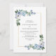 Blaues Hochzeitsdesign mit staubblauen Rücken und blau-weiß gestrichenen Blume mit grünem Blattwerk. Ein perfektes Design für Ihre Hochzeit im Sommer, Frühling und Winter. Sie können den Text und die Farbe Details auf dieser Hochzeitsladen Vorlage personalisieren.