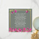 Schöne magenta Bougainvillea quadratische Beileid-Karte mit einem positiven und inspirierend Sprichwort über Mütter auf einem grünen und goldenen Hintergrund.