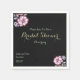Dieses grafische Foto zeigt ein gemischtes, violettes Bouquet mit vollen, rosa und weißen Blume, auf einer grünen, schwarzen, benutzerspezifischen Hintergrund, mit Schriftart-Illustrationen, für Bridal, Dusche Einladung, Format.