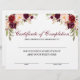 Beruflich, anpassbar, Abschlusszeugnis. Ideal für Kurse, Schulungen, Geschäftskurse und vieles mehr. Personalisieren Sie Ihren eigenen Text. Elegantes Watercolor Burgund mit bordeauxfarbenen Rose, rosa Rosen und botanischem Grün.