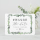 Die leafy Aquarellblume ändert die Datumskarte. Mit wunderschönen Aquarellfarben-Blätter und modernem, fett gedrucktem Typ ist diese Änderung die Termineinladung am Trend und perfekt für jede Jahreszeit. Teil einer Hochzeitssuite