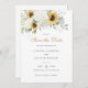 Blumen Elegante weiße Hydrangea Grüne Save the Date Einladung Hochzeit. Bläserweiße Hydrangea und Sonnenblumen Hochzeit Speichern Sie die Vorlage für die Datumskarte