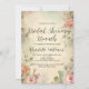 Blumenbrunch-Einladung mit Vintagem Hintergrund und rosa Rosen. Personalisieren Sie den Text mit Ihren Party-Details, UAWG und Registrierungsinformationen, um die zukünftige Braut zu feiern.