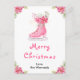 Diese elegante und festliche Weihnachtskarte in Aquarell kann mit Ihrem Familiennamen personalisiert werden. Es verfügt über eine Aquarellpinke Eis-Skaten-Stiefel und wunderschöne blumenrosa Poinsettia-Blume. Der Text kombiniert handgeschriebene Skripte mit serifenlosen Schriftart für ein stilvolles und modernes Design.