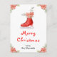 Diese elegante und festliche Weihnachtskarte in Aquarell kann mit Ihrem Familiennamen personalisiert werden. Es verfügt über eine Aquarelleis-Skaten-Stiefel und schöne blumenrote Poinsettia-Blume. Der Text kombiniert handgeschriebene Skripte mit serifenlosen Schriftart für ein stilvolles und modernes Design.