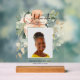 Das moderne Pfirsichschild (mit oder ohne Holzblock-Halter) enthält den Wortlaut "Celebrating the Life of", das Foto, den Namen und das Geburtsdatum/das Sterbedatum Ihrer Lieben mit einem Hintergrund von pfirsichfarbenen Blume und Blätter. PASSENDE Artikel in unserer Sammlung.