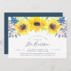 Die Dusche aus der Brauerei mit Country-Chic-Blumen und Blumen ist ein Oberteil von Sonnenblumen in Aquarelltönen, kleinen blauen Knospen und grünem Blattwerk. Personalisieren Sie mit Ihren Brautparty-Details in modernen handgeschriebenen Schriften und klassischen Serifenschriften. Brautduscheinladungen kehren in den reichen Hafen blau zurück.