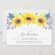 Die Country chic Blumen Baby Dusche lädt mit einer obersten Grenze von Aquarellsonnenblumen, winzigen blauen Knospen und grünem Blattwerk ein. Persönlich mit Ihrem Baby Duschdetails in modernen handgeschriebenen Schriften und traditionellen Serifenschrift. Geschlechtsneutrale Babydusche-Einladungen kehren in reichhaltiges Hafenblau zurück.
