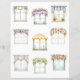 Ein Blatt mit bezaubernden Ausschnittbildern mit vintage-inspirierten Fenstern, die mit üppigen floralen Akzenten und zarten Vorhängen drapiert sind, jedes einzelne in ein weiches, ätherisches Licht getaucht. Jedes Fenster fühlt sich wie eine winzige Vignette aus einem Bilderbuch an - quadratische Rahmen, verwitterte Scheiben und sanfte Kaskaden von blühenden Blumen und rankender Grünpflanzen, die mit anmutigem Charme über die Kanten quellen. Die floralen Vorhänge fügen einen Hauch von Eleganz aus einer anderen Welt hinzu, ihre Muster sind subtil beleuchtet, als ob sie vom Morgenlicht berührt würden.