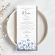 Blumenflora-Hochzeitmenü der Blauen Wildblume Menükarte