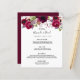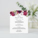 Eine elegante bohemianische Hochzeitskarte. Die Rose sind in Rosa und Bordeaux gehalten. Vorlagen für Ihre Namen, Datum und das Hochzeitsmenü. Weißer Hintergrund vorne, Bordeaux hinten. Schwarze Buchstaben.