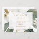 Schick und elegant. Diese wunderschöne Hochzeit speichern Sie die Dattelkarte mit einem wunderschönen Blumenstrauß in Aquarellfarben mit Imitation goldenen Akzenten. Das Design umfasst ein weißes, durchsichtiges Overlay mit zeitgenössischem Set von Schriftart aus Kunstgold. Die Vorlage wird mit zwei Initialen nebeneinander auf der Rückseite und optionalem Text ergänzt. Diese Karte ist unvergesslich und einzigartig und vermittelt ein Gefühl von Eleganz, Freude und Charme.