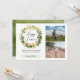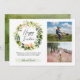Ostergrusskarte mit weichem grünem Blumenkranz und den Worten "Happy Oaster" Fügen Sie Ihre eigene Nachricht und zwei Bilder an die Vorderseite.