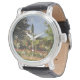 Uhr, Vintage Männeruhr mit schwarzem Lederarmband