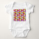 Dieser Babybodyanzug hat ein Frühjahrsdesign aus verstreuten Rose, Stiefmütterchen, Gänseblümchen und Periwinklen.