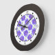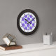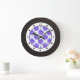 Ein botanischer und heimeliger Stil, in dem das Foto eines blauen Geranus-Blume-Musters den weißen Uhrenkreis mit schwarzen Punkten für alle Stunden bis 3, 6, 9 und 12 trifft. Es wird ein schwarz gefärbter Rahmen hinzugefügt. Sie können die Hintergrundfarbe (zentriertes Teil) anpassen, indem Sie die Farbe dieses Produktes anpassen. Eine perfekte Wanduhr für jede helle und fröhliche Zuhause, und natürlich in einem Gartenhaus oder einem Gartenhaus.