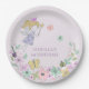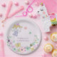 Niedlich Magical Fairy Themenpapier Teller, die Sie für jeden Anlass personalisieren können. Das Design besticht durch eine magische Fee, Schmetterlinge, Ladybirds und skurrile Gartenanlagen, Blume. Die Einrichtung ist in Pastelltönen in lila, rosa, grün und gelb gehalten.