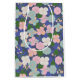 Ein hübsches Design pastellfarbener abstrakter Blume mit blauen Blätter im Hintergrund.