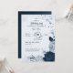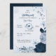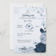 Elegante marineblaue und staubblaue Blumen und einige schöne Blätter Geburtstagsfeier Einladung Die Glitzer Details werden simuliert