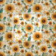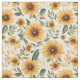 Ein lebendiges, handbemaltes, blühendes Sonnenblumen-Blume-Design. Gelbe Blumen mit blauem grünem Blattwerk. Musterwiederholung