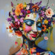 "Blumengeometrie" - Ein botanisches Portrait. Ein faszinierendes Treffen von mosaikartigem Design und üppiger Blumenpracht prägt dieses Werk. Der durchdringende Blick der Frau kontrastiert mit der Weichheit der Blüten und schafft ein Gleichgewicht zwischen Präzision und Chaos. Eine lebhafte Farbpalette aus Rosa, Gelb, Lila und Rot hebt die Verbindung zwischen Struktur und Bio hervor und liefert ein modernes, unvergessliches Portrait.