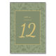 Hochzeitskarte in Weiß-Tischnummer mit Blumenrahmen und Goldtext