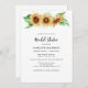 Hübsche Wasserfarbe Bridal Dusche Einladung mit eleganter Sonnenblume und Eukalyptusbouquet. Sie können die Hintergrundfarbe einfach ändern, indem Sie unser "Design-Tool" verwenden, um Ihrem Farbschema zu entsprechen